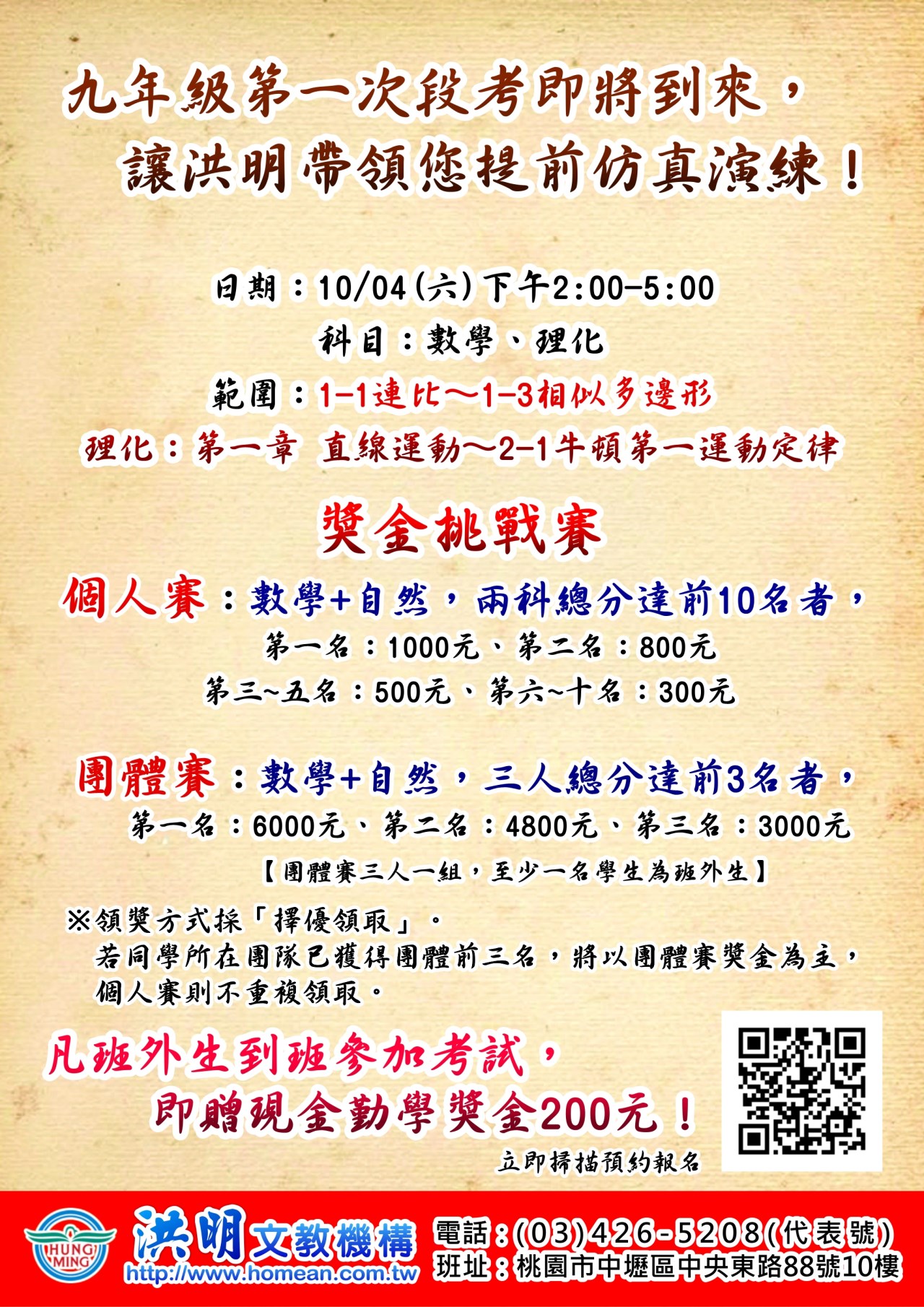 🎉【九年級第一次段考挑戰賽 開跑啦!】🎉